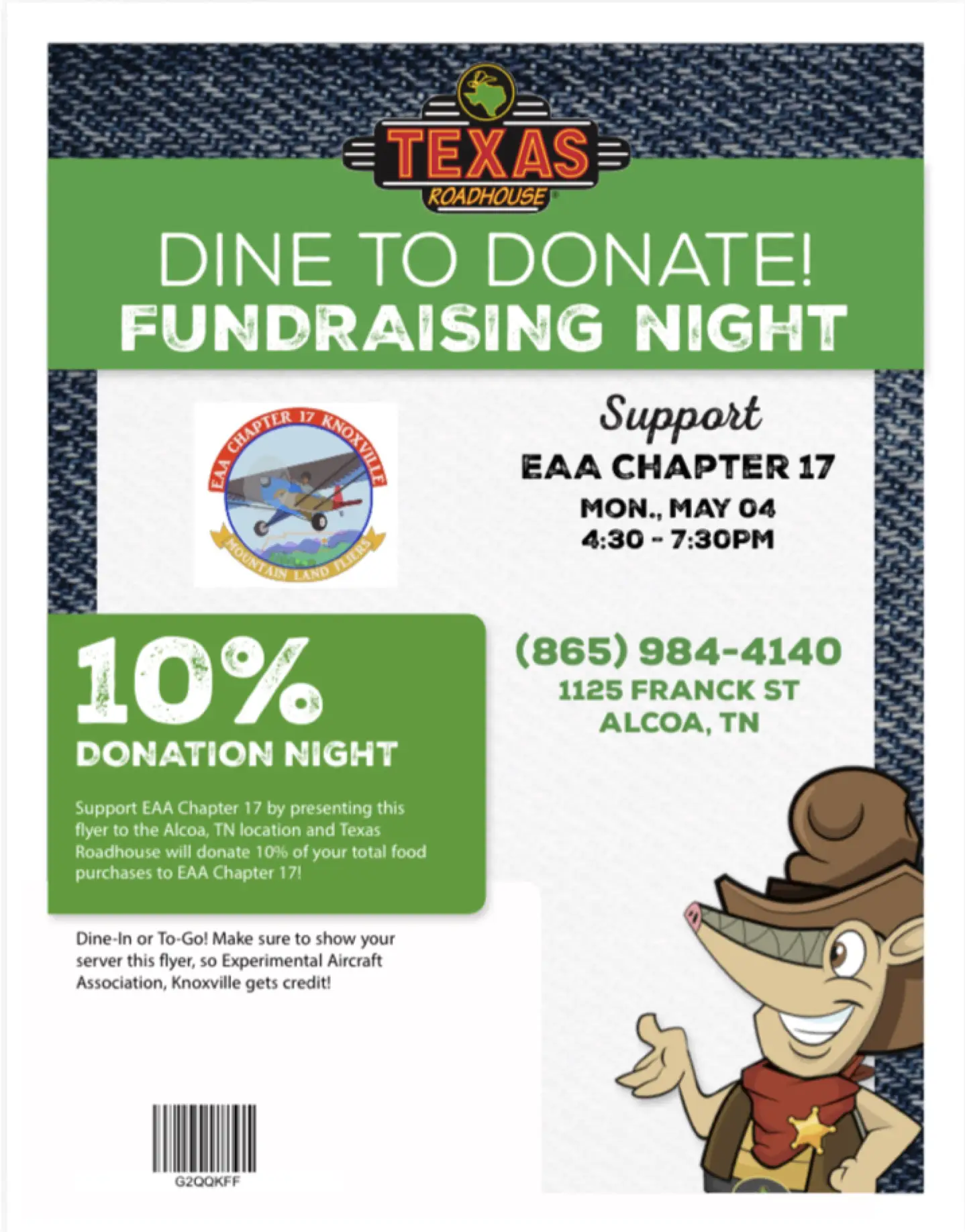 Join us for a dine to donate program before our regular chapter meeting on May 4th. You can come any time between 4:30pm and 7:30pm. Just show a copy of the flyer to your server. A group of us plan to dine at Texas Roadhouse at 5:15pm before the the meeting at the Airport Operations […]